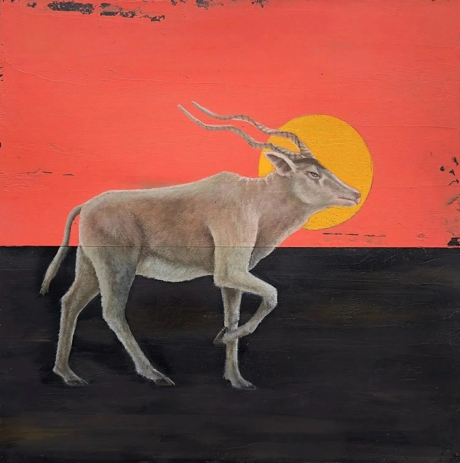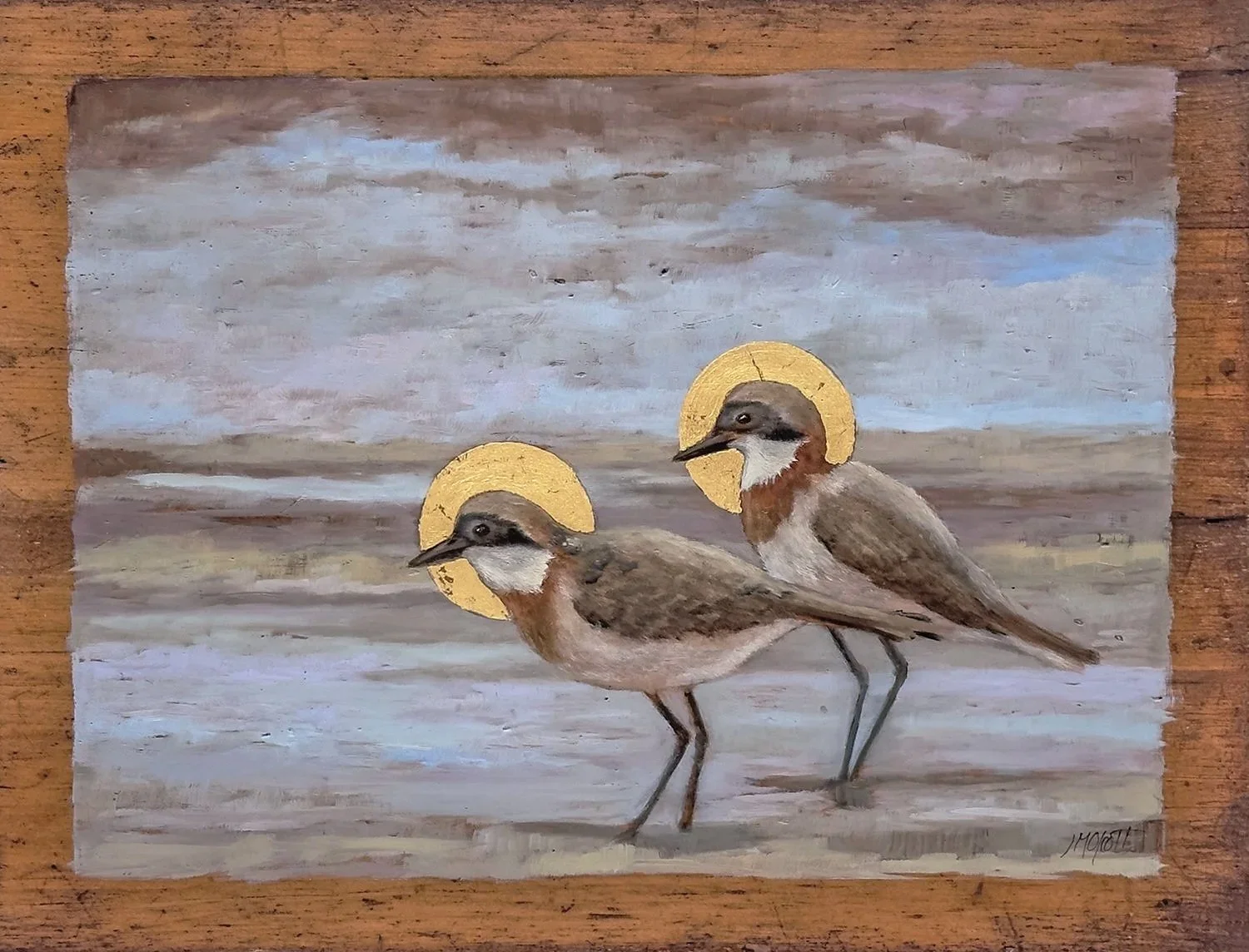 Jody Olcott's work remembers extinct animals and calls attention to the many thousands of species at risk of extinction in the coming decades. Olcott, a lifelong artist and naturalist, found inspiration for this series while traveling in Russia and seeing Byzantine religious icons. In her works, she preserves aspects of traditional icons-gold halos, painted wooden panels, decorative constructions —but turns her attention to her own sacred subject: extinct animals. Studying photographs or naturalists’ journals and drawings, she takes great care as a self-taught painter to capture them in benevolently “lifelike” detail. The animals in Olcott's form of altarpieces-species of birds, tigers, wolves—are as diverse as the reasons they are extinct, but their message is singular: a call for better stewardship.